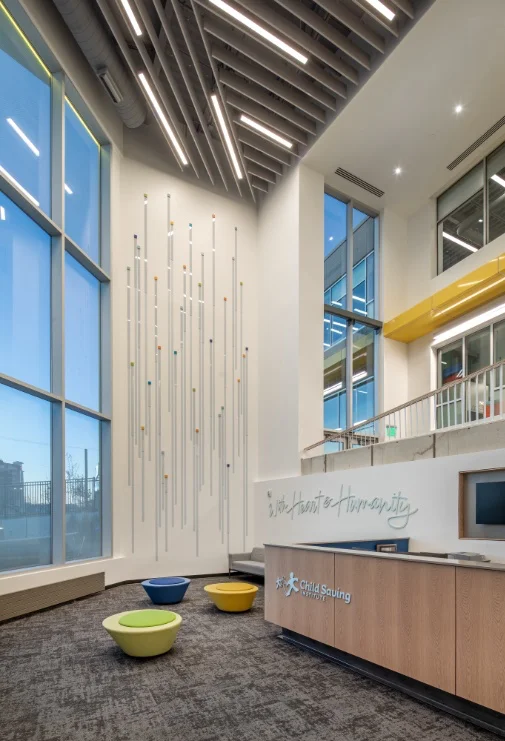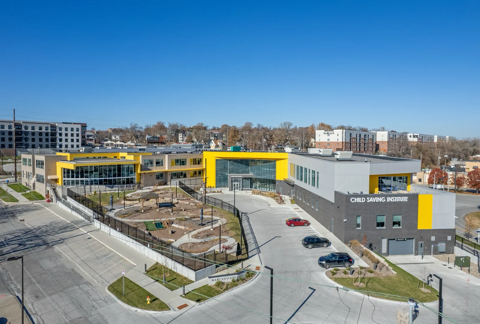 The 45,000 SF building renovation and 50,000 SF building addition for Child Saving Institute consists of a multi-year, phased construction approach. The project will expand the Early Childhood Education Center with the addition of 6 preschool classrooms and 2 treatment childcare rooms, expansion of the Juvenile Justice Emergency Shelter, and provide new Mental Health Offices.